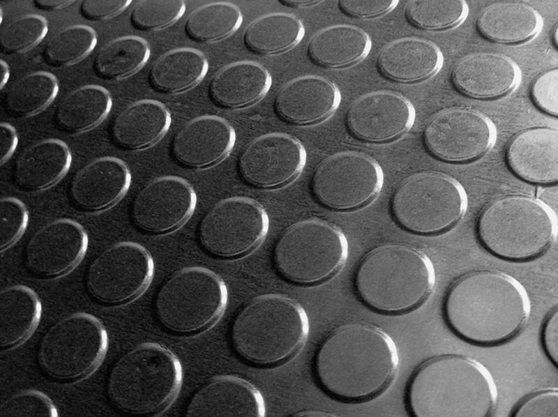 Rubber flooring in rolls with Pirelli-type buttons